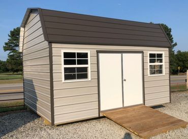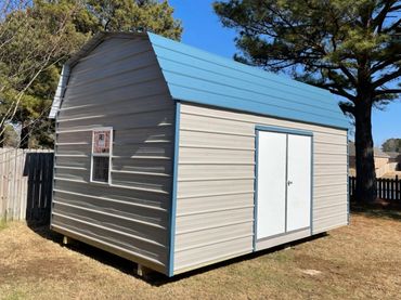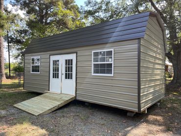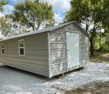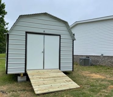 Our Portable Buildings come standard with a 4 foot door with knob and key, treated Advantech flooring, floor joists at 16″ apart, 2×4 studs at 2′ apart, and blueprints. All metal comes with a 40 year warranty. Also, all of our metal and wood is 95% pre-cut.